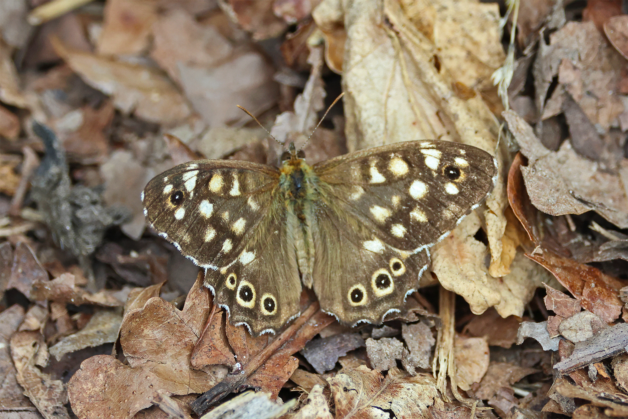 Silver-washed Fritillary, Red Admiral, Peacock, Speckled Wood, Meadow Brown, Ringlet, Large Skipper, Large White, Green-veined White, Burnet moth, Common Carpet moth, Blood-vein moth, Straw Dot moth, White-tailed Bee, Yellow-tailed Bee.