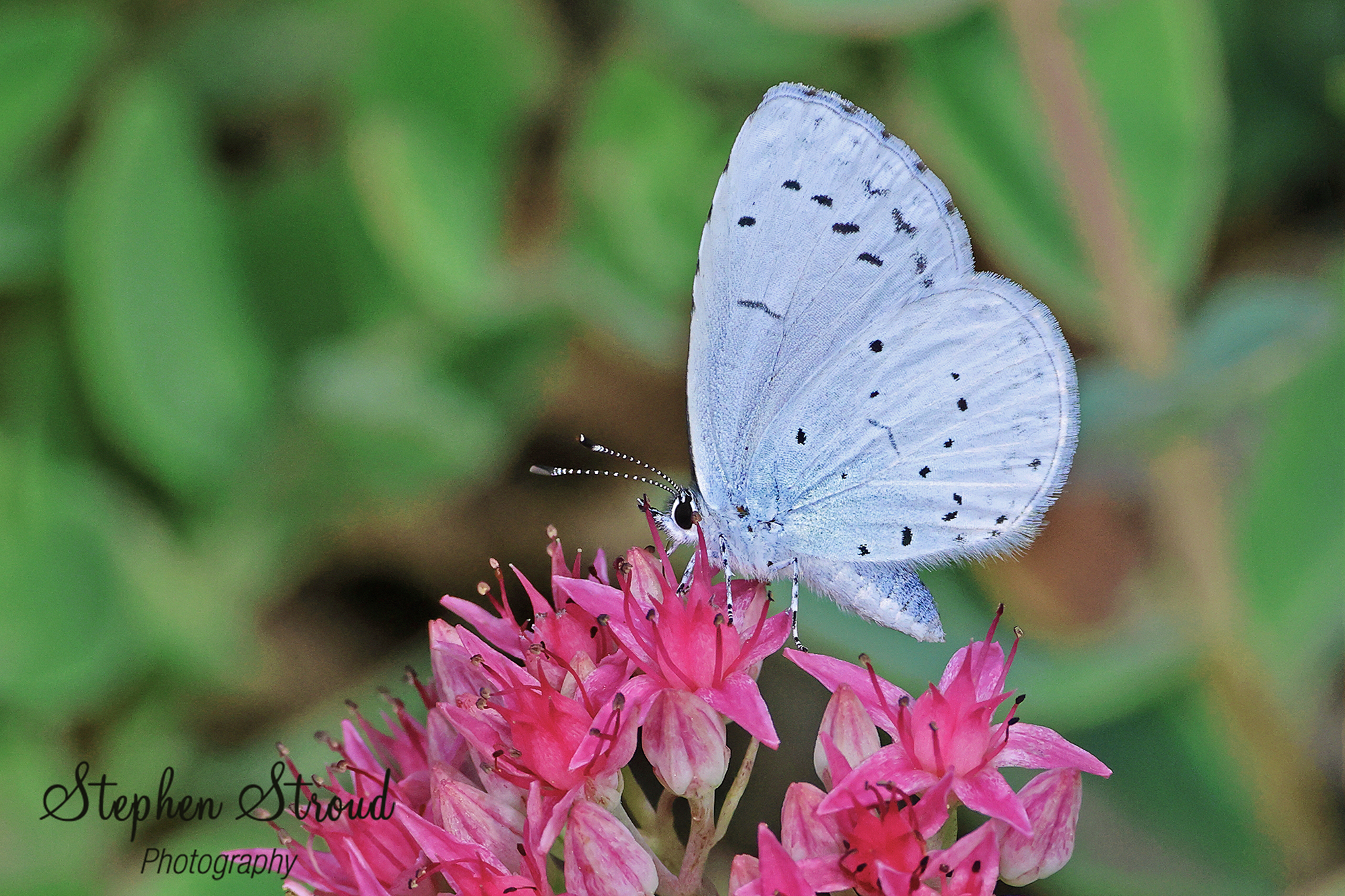 Red Admiral, Comma, Peacock, Speckled Wood, Meadow Brown, Gatekeeper, Small Skipper, Common Blue, Holly Blue, Large White, Green-veined White.